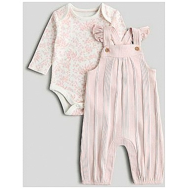 Pink Dungarees and Bodysuit Outfit Up to 7.5lbs