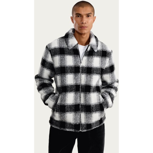 Borg Check Print Zip-Up Relaxed Fit Jacket in Black