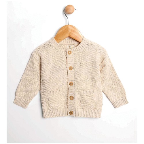 Knit Hooded Cardigan In Beige 6-9 Months