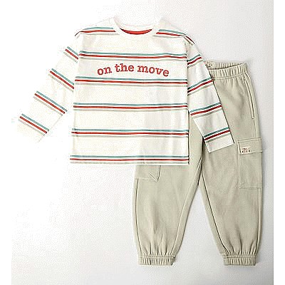 Brush-Back Cargo Joggers & Striped Long Sleeve T-Shirt 5-6 Years