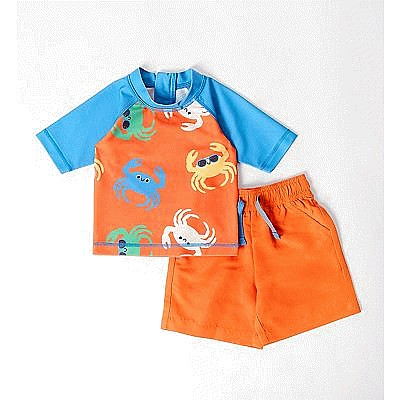 Crab Print Swim Short And Raglan Rash Vest Set