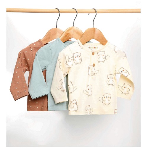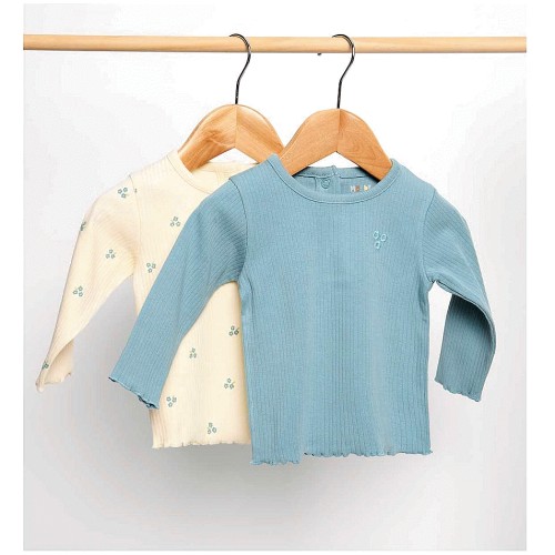 Ribbed Long Sleeve Tee with Lettuce Hem All Over Print 3 6 Months