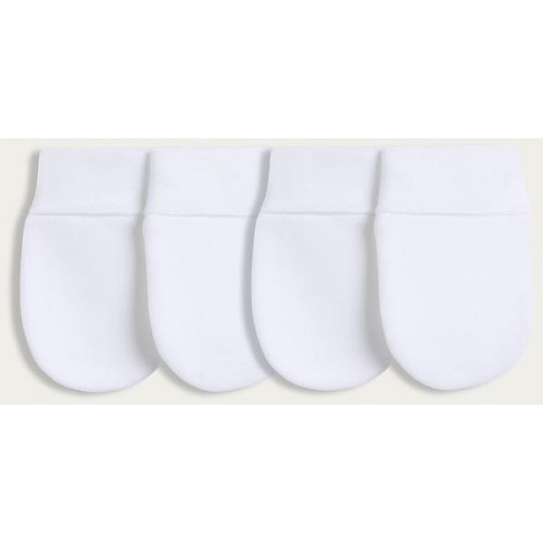 4-Pack Pure Cotton Scratch Mittens in White