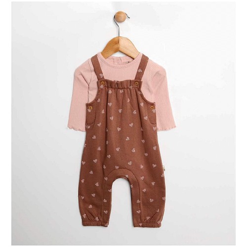 Ribbed Bodysuit with Lettuce Cuff and Sweat Dungaree 12 18 Months