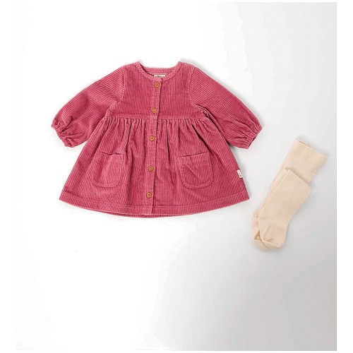 True cord dungaree paired with a hedgehog printed bodysuit.