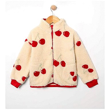 Cherry Print Borg Jacket with Contrast Binding 5 6 Years