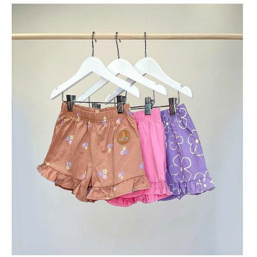 Product details: 3 different cotton rich coloured socks with lace like frills in floral, stripe & plain designs with 3D flower