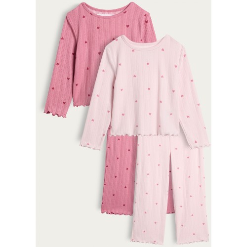 Girls 2-Pack Pointelle Heart Print Pyjamas in Pink