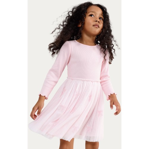 F&F Girls Bow Embroidered Long Sleeve Dress in Multi