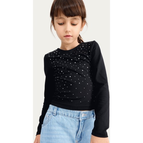 Ribbed Long Sleeve Tee with Lettuce Hem All Over Print 3 6 Months