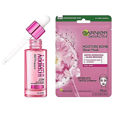 Lash Sensational Black Sky High Masara & Garnier Moisture Bomb Cherry Sakura Sheet Mask Duo Bundle