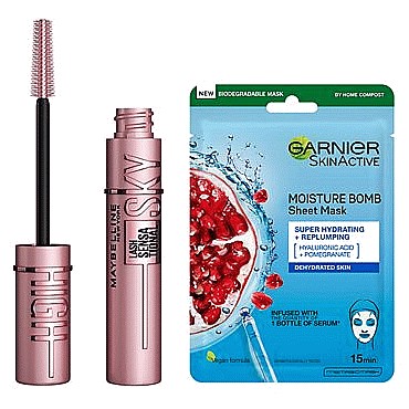 Lash Sensational Black Sky High Masara & Garnier Moisture Bomb Pomegranate Sheet Mask Duo Bundle