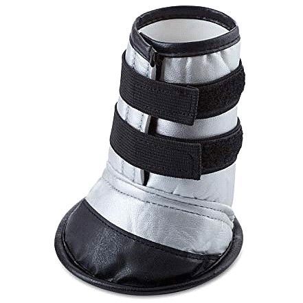 Actual size: 13 cm high, 11 cm across pad, 16 cm circumference at top of boot (adjustable straps)