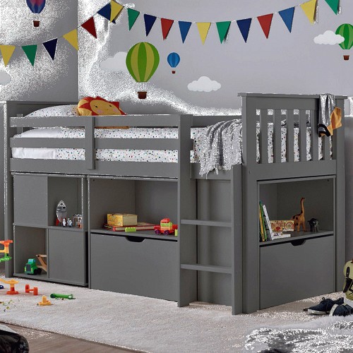 Milo Single Grey Sleep Station Desk Storage Bed and Orthopaedic Mattress