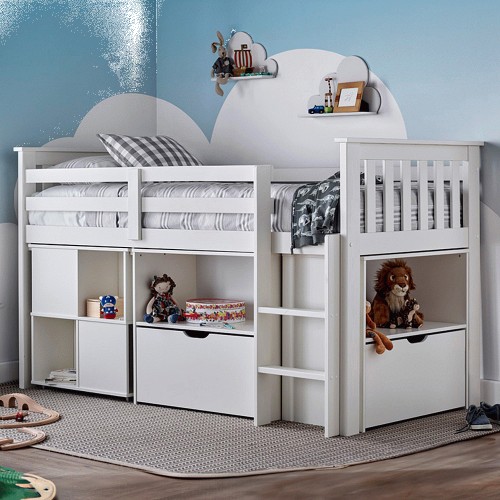 Milo Single White Sleep Station Desk Storage Bed and Memory Foam Mattress
