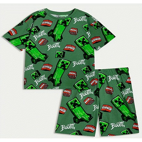 Minecraft Pure Cotton Creeper Print Pyjama Shorts Set in Green