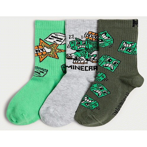 Minecraft 3-Pack Cotton Blend Ankle Socks in Green Multi