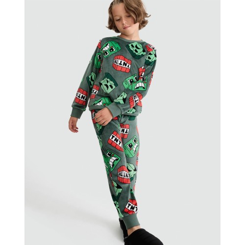 Minecraft Minky Fleece Creeper and TNT Print Pyjamas in Green