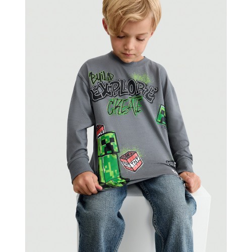 Minecraft Creeper Explore Create Pure Cotton Top in Grey