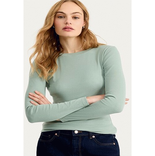 Cotton Rich Crew Neck Long Sleeved Top in Green