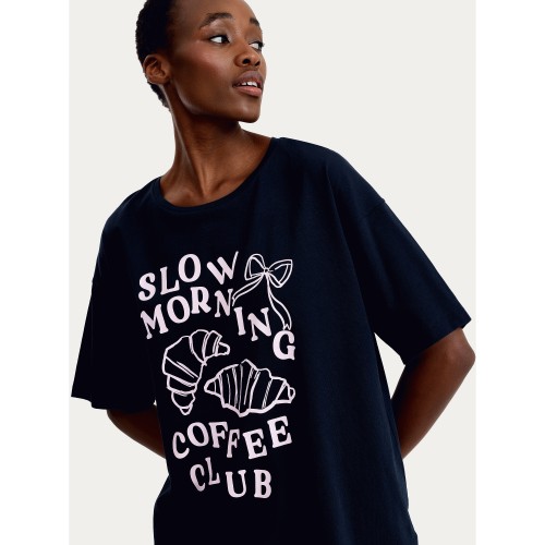 Pure Cotton Coffee Club Pyjama T-Shirt in Navy