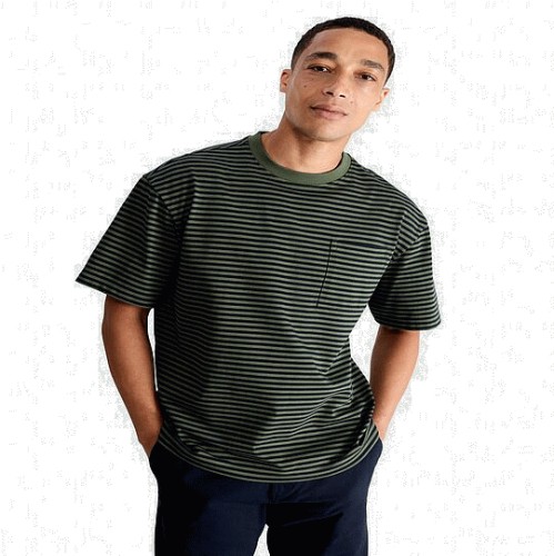 Pure Cotton Heavyweight Stripe Print Short Sleeved T-Shirt in Green