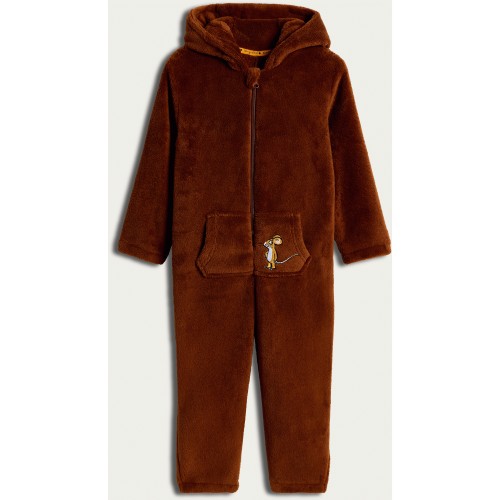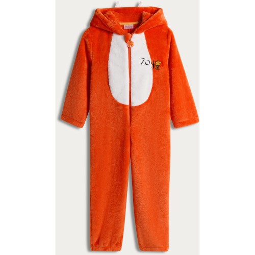 Boys Fleece Tiger Print Zip Up Hooded Onesie in Orange