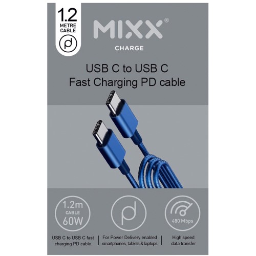 Mixx USB C To USB C Fast Charging PD Cable Navy