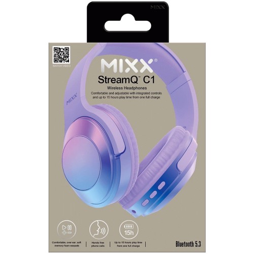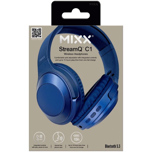 Mixx StreamQ C1 Over Ear Wireless Bluetooth Headphones Blue