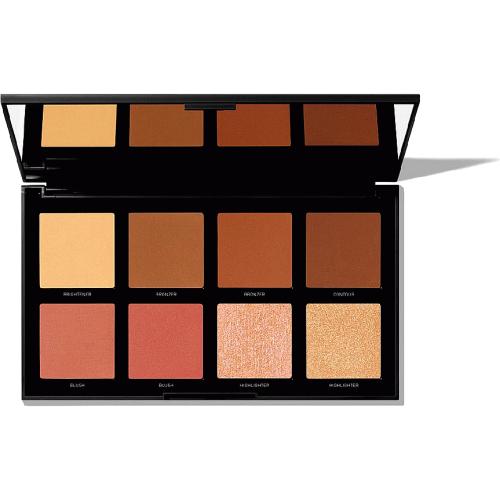 Matte brightener, matte contour, two bronzers, two blushes, and two highlighters