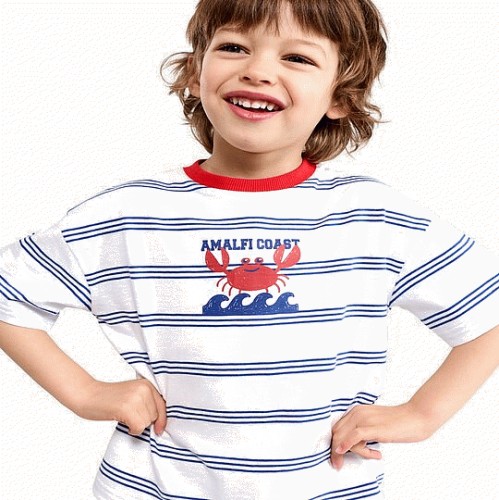 F&F Boys Pure Cotton Amalfi Coast Crab T-Shirt in Multi White