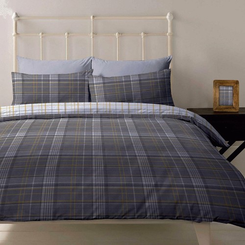 Grey Checked Brushed Cotton Duvet Set Single