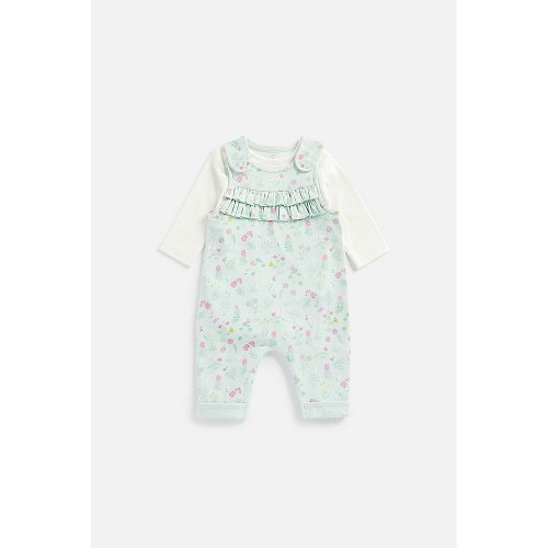 2-Piece Cotton Rich Floral Print Dungarees and Bodysuit Set in Neutral