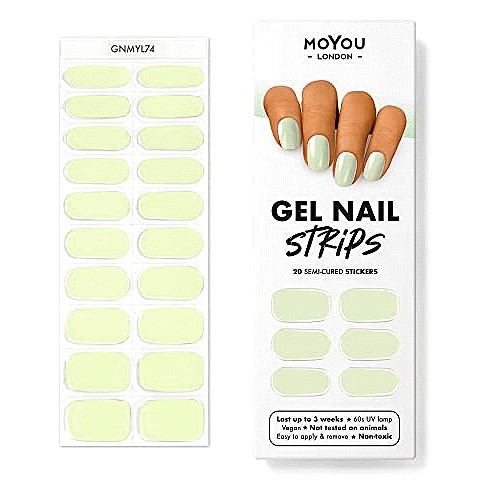 Semi Cured Gel Nail Strips 20 Pcs. Waterproof Gel Nail Wraps Cures in Sunlight or UV LED Lamp Lasts Up to 2+ Weeks Stretchable Easy to Apply & Remove Vegan & Cruelty-Free