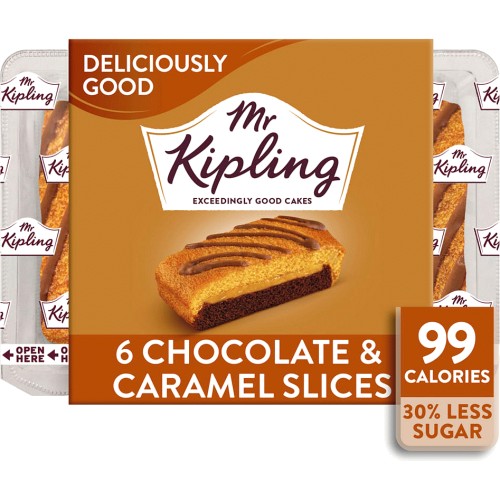 "These mr Kipling chocolate and caramel slices are lower in sugar but still have the same delicious taste"