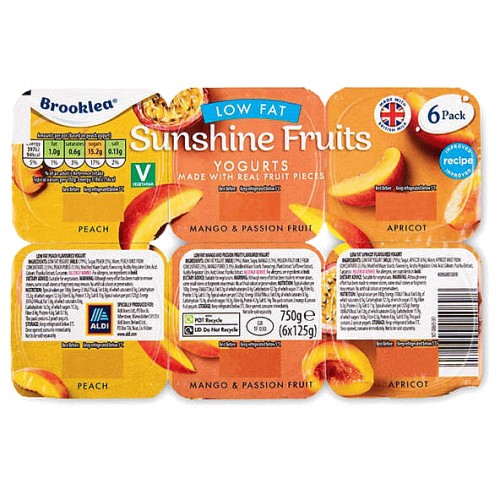 6 Low Fat Fruit Yogurts Strawberry & Peach