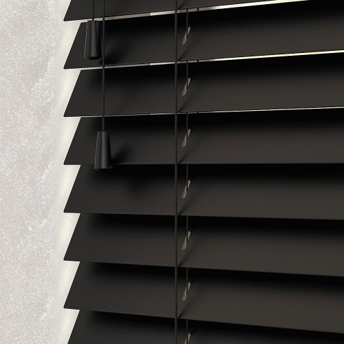 New Edge Blinds Wooden Venetian Blinds with Strings Ink Black
