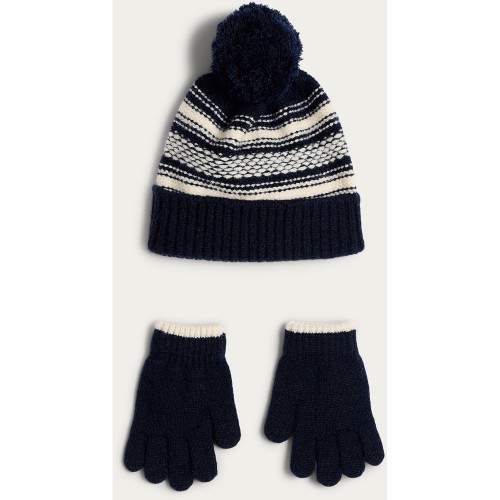 Boys 3-Pack Knitted Snood Gloves and Hat Set in Navy