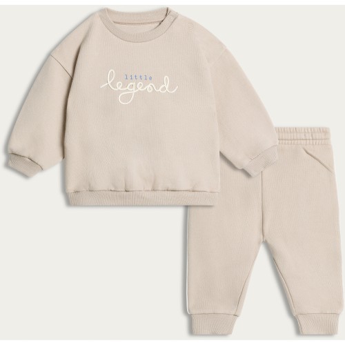 2-Piece Cotton Rich Little Legend Sweatshirt and Joggers Set in Tan