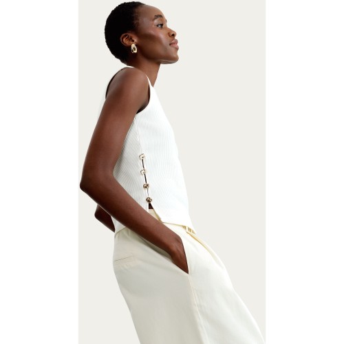 Cotton Rich Ribbed Side Button Detail Vest in Cream