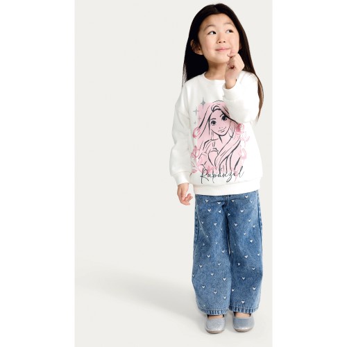 Disney Cotton Rich Rapunzel Print Sweatshirt in Multi Pink