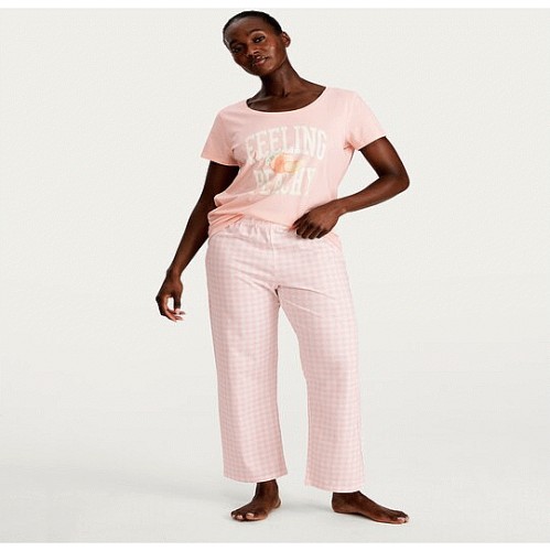 Pure Cotton Peach Slogan Pyjama Set in Peach