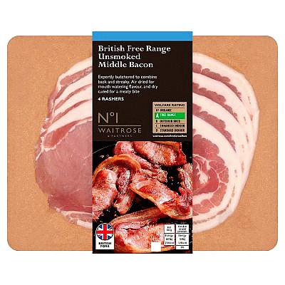 Waitrose 8 Dry Cured Unsmoked Back Bacon Rashers