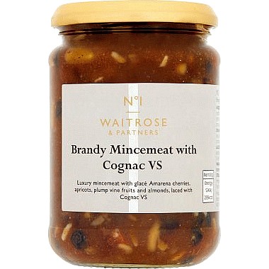 The mincemeat contains apricots, plump vine fruits, and almonds.