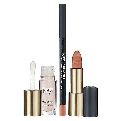 Bundle contains Lip Shine Oil, Matte Muse Lipstick, and Precision Edit Lip Liner