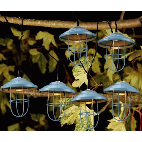 Calm Set Of Solar Caged Blue Lantern String Lights