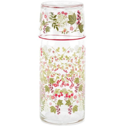 Bee Floral Carafe With Glass Lid And Blue Rim