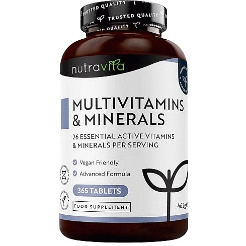 Multivitamins & Minerals 365 Vegan Tablets 1 Year Supply Immune System Support Multivitamin Tablets for Women & Men 26 Essential Active Vitamins & Minerals Made in The UK