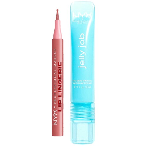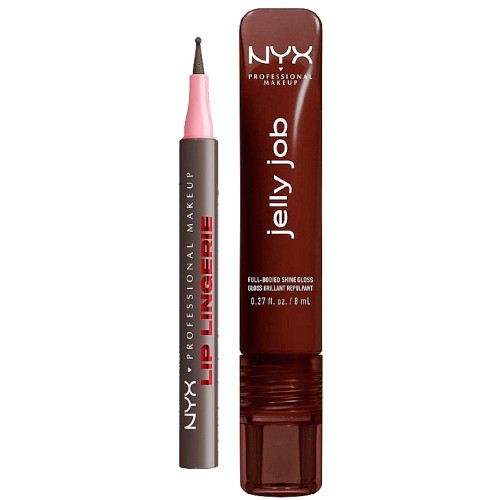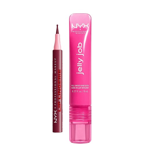 NYX Lip Lingerie Lip Liner Stain Lip Lock & Jelly Job Lip Gloss Jelly Kiss'd Duo Bundle