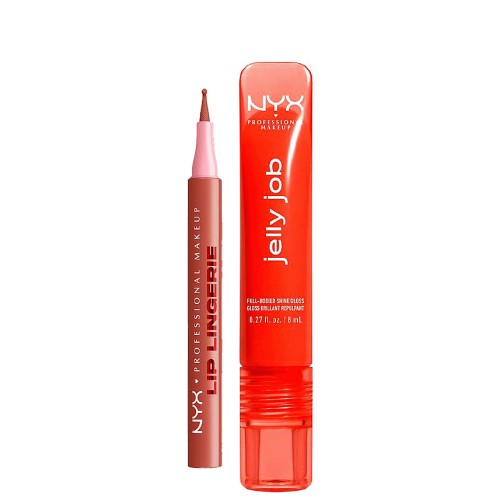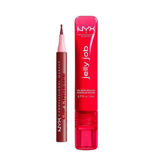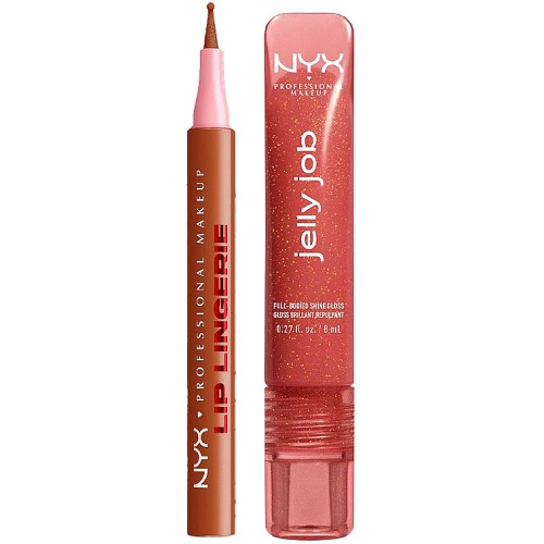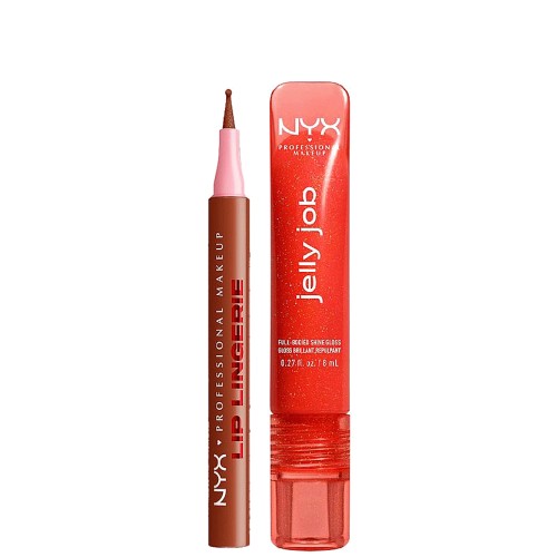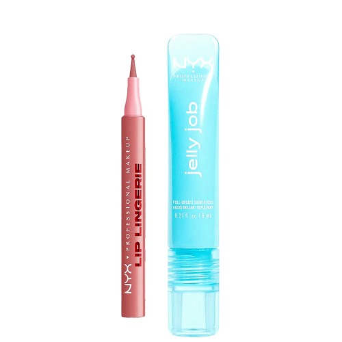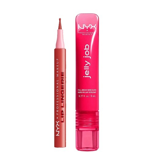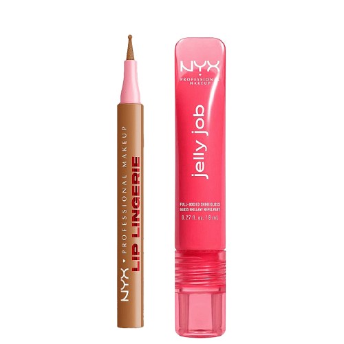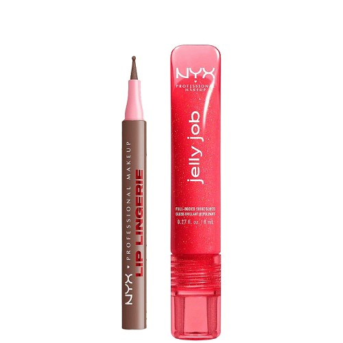NYX Lip Lingerie Lip Liner Stain Lip Lock & Jelly Job Lip Gloss Jelly Kiss'd Duo Bundle